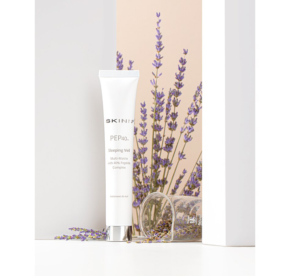 Powered by a 3D Hydraconcept, this highly concentrated non-comedogenic gel is infused with Hyaluronic Acid and a supercharged blend of peptides, antioxidants and Vitamin B3 for instant and optimal hydration to smooth fine lines and wrinkles. Long and short term visible results are delivered as the PEP40 Sleeping Veil is formulated to accelerate the results of any skincare routine, applied as the last step or directly onto clean skin. PEP40 Sleeping Veil boosts collagen, improves elasticity, and relieves dehydrated, flaky skin while diminishing the look of pores and uneven skin tones. This soothing formula restores the skin’s homeostasis and reestablishes its natural circadian rhythm by blocking inner stress signals with an exclusive dual-action microalgae and calming lavender complex to promote tranquil sleep. Go beyond beauty sleep and awaken to skin that looks and feels smoother, firmer, brighter and more youthful.