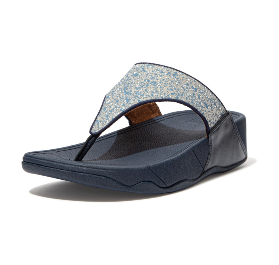 Featuring sophisticated sparkle and superb comfort, say hello to FitFlop's Lulu sandals in a shimmering flecked finish! FitFlop's bestselling Lulu sandals boast a timeless triangular vamp, softly padded uppers, and a soft microfiber toe-post With FitFlop's legendary super-cushioning, pressure-diffusing Microwobbleboard midsoles underfoot. Meet the season in shimmering faux-leather, speckled with tonal flecks, complemented by fine fabric piping and metallic faux-leather detailing at the sides. A perfect mix of sophisticated sparkle and superb walk-all-day comfort.