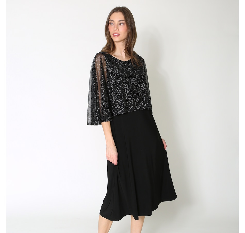 • Fabric: 95% polyamide, 5% spandex (poncho), 92% polyester, 8% spandex (dress)