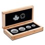 Canadian artist Marie-Élaine Cusson created the reverse designs which feature a maple leaf on each coin to honour the Queen of Canada. The $300 coin also features the royal monograms for Her Majesty Queen Elizabeth II and Prince Phillip, and the number "70" to highlight their platinum wedding anniversary.