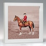 This innovative and visually stunning silver medallic art in the shape of the RCMP on horseback uses new technology and innovative production techniques to showcase one of Canada's national icons. With a weight of 100 grams of .9999 fine silver and a width of about 100 mm, this is a substantial collector piece. The reverse RCMP design comes to life through artistic colouring painted by renowned Canadian artist Trevor Tenant. A brilliant silver border shines around the colour over engraving, while the obverse is presented with detailed engraving and a classic proof-like finish. Mintage is limited to just 1,867 pieces. This series is issued by the Canadian Heritage Mint, and includes a certificate of authenticity attesting to the mintage, weight and fineness. The design is based on the "Mountie in Full Dress Uniform" 1935 10-cent postage stamp. The original stamp was designed by the Canadian Bank Note Company.