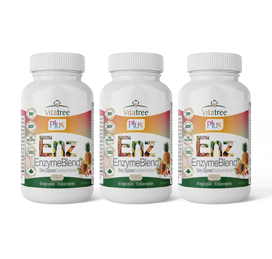 VitaTree Enzyme Blend is a digestive enzyme formulation containing 13 different types of natural enzymes to help with the digestive processes. This unique combination of enzymes help with the digestion of carbohydrates (wheat), fats and proteins (dairy).