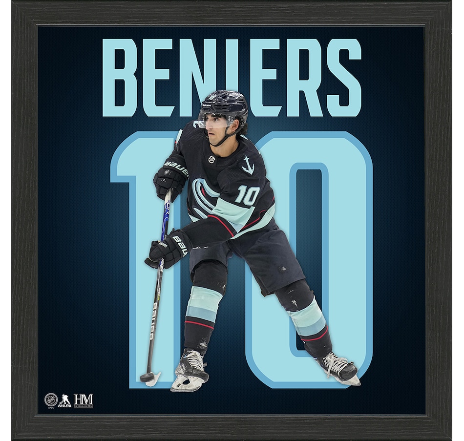 This unique collectible frame features an action photo of your favourite NHL star super imposed on his respective jersey number. The printed art is delivered in a 13" x 13" wood frame under glass and ready to hang. Officially Licensed by the NHL and NHLPA, this product is proudly made in the USA by The Highland Mint!