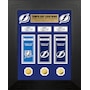 Available in a limited edition of only 1000, this 18" x 22" frame with 2.5" wide molding commemorates the Lightning's three Stanley Cups with banners for all championships. The banners and four gold flash plated coins are double matted with suede under plexiglass, with an engraved nameplate and team logos die cut in the mat. Above each banner is a list of the teams they played in each final. The four 39mm gold plated minted coins include the Lightning's three-time Stanley Cup coin, the Lightning's team coin, the NHL coin and the Stanley Cup coin. Officially licensed by the NHL, each frame is accompanied by a certificate of authenticity. This product is proudly made in the USA by The Highland Mint!