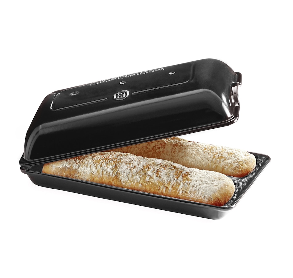 Ciabatta is a classic Italian bread made from a lean and very runny dough which gives it a unique moist texture, chewy interior and one-of-a-kind flavour. Thanks to the two cavities in this baker, the loaves (up to 250 grams each) are well-shaped, resulting in even slices, but are also better suited for sandwich-making. The domed lid helps control the level of humidity to ensure a slightly crispy crust while keeping the inside moist and fluffy; the deep grooves work for other, softer dough, such as gluten-free. The openings on both ends of the lid make it easy to manipulate.
