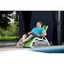 Acrylic mesh seat easily shakes off the water. Flat out or full up, this lounger has your back. With the press of 4 buttons, folds to 51L x 6H x 27W" for easy storage