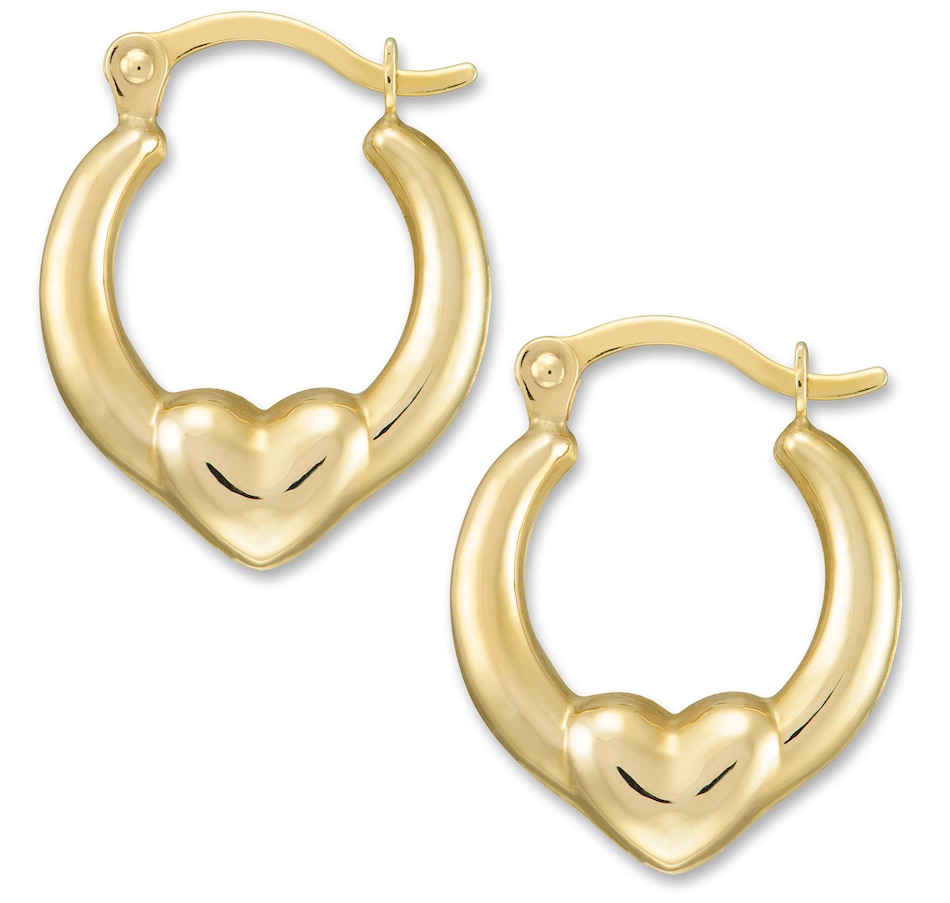 10K Yellow Gold Childrens 13mm Hoop Earrings with Heart
