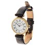 This high-end designer Concord Swiss-made watch is crafted in 14K yellow gold with a round white dial, black Roman numerals and hands, and a sapphire crown. The case number is #2033260, 343252, and the watch is attached to a black genuine calfskin leather band with a gold-filled buckle.