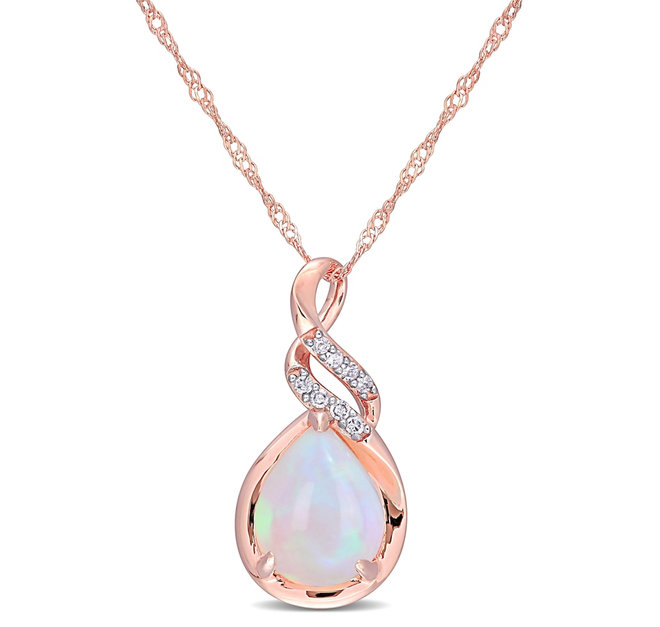10K Rose Gold Diamond and Ethiopian Opal Pendant