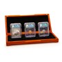 This three-piece set issued in 2007 includes virtually perfect examples of investment-issue coins from the United States Mint issued in platinum, gold and silver. The set includes a 1/10 ounce $10 platinum coin, a 1/10 ounce five-dollar gold coin and a one-ounce silver one-dollar coin. All the coins are certified and encapsulated by the independent third party grading service ICG as perfect Gem Uncirculated MS-70 condition, and all the coins are designated as first strikes issued from the first new dies for the year. The three coins come presented together in an attractive wooden finish case.