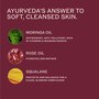 This cleanser contains moringa oil, which is rich in antioxidants with antipollution cleansing benefits. It helps gently lift dirt, makeup and impurities, helping to leave the skin feeling fresh and glowing. It also contains rose oil, a delicate fragrant oil that is known in Ayurveda to calm and moisturize the skin, as well as coconut oil, which can deeply hydrate and can help leave the skin feeling soft and smooth.