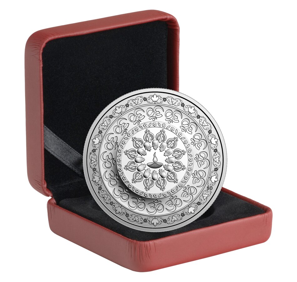 This $20 fine silver coin celebrates Diwali, an annual festival of lights celebrated worldwide and by over 1.2 million Indo-Canadians. Diwali is a dazzling five-day festival of feasts, music and sights. Its overarching theme of spiritual light, and the triumph of good over evil, makes Diwali a shining reflection of the beauty of Canada's cultural diversity—a notion that is at the heart of this fine silver coin, whose ornate design seemingly radiates with the joyous spirit that prevails during the Festival of Lights.