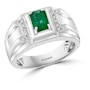 EFFY Men's 14K White Gold Diamond & Emerald Ring
