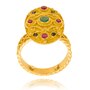 18KT Yellow Gold Etruscan Style Ring with an Emerald Rubies and Sapphires