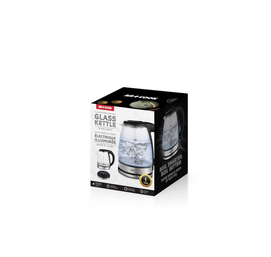 Art + Cook Illuminated 1,000-Watt Electric Glass Kettle (black)