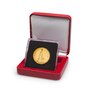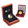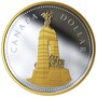 The memorial is plated in gold. The obverse design features the effigy of Her Majesty Queen Elizabeth II by Dora de Pédery-Hunt that appeared on the original proof dollar. Her Majesty's effigy is also plated in gold.