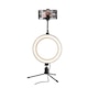 Bring studio-level lighting wherever you go with Brookstone’s 8" ring light. This high-quality device utilizes 3 distinct colour temperatures and 10 adjustable brightness levels to give you the best lighting for your specific needs. Whether you’re on an important business call, vlogging, or simply talking a selfie, you can be confident you’ll look your best with Brookstone’s ring light! The metal tripod (included) is made from an ultra-durable metal, allowing you extended usage and the ability to take this light on the go. Best of all, it comes with a Bluetooth-enabled shutter, so you can take images with the click of a button without adjusting your position!