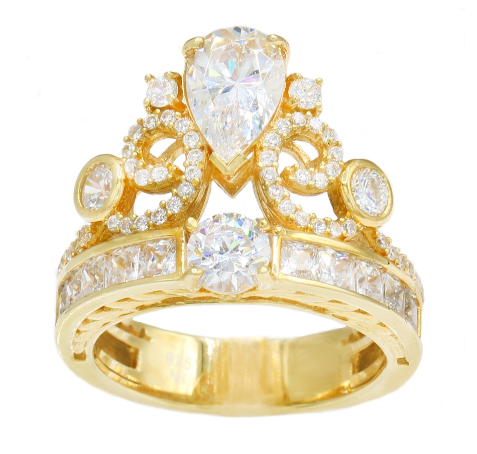 Sterling Silver Yellow Gold Plate Diamonelle Royal Crown Ring