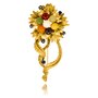 Custom Made 14KT Yellow Gold Multi-Colour Jade Flower Brooch