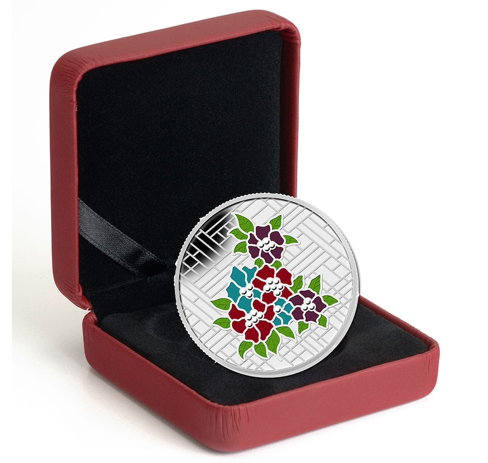This coin is the first by the Royal Canadian Mint which celebrates the wide-reaching beauty of this artful glass. The representation of stained glass from Craigdarroch Castle on this coin is enhanced by translucent glass-like enamel that makes the coin shine and reflect light, alluding to the ethereal light-play that actual stained glass creates. The elegant enamel is hand-filled into individual crevices, mimicking the painstaking task of creating stained glass.