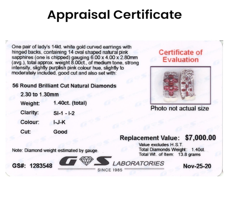 • Specs: (14) oval shaped pink sapphires (8.00ctw), (56) round brilliant cut diamonds (1.40ctw)