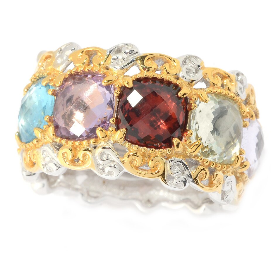 • (1) 6 mm cushion-shaped, prong set and checkerboard-faceted green amethyst (0.85 av. ctw)