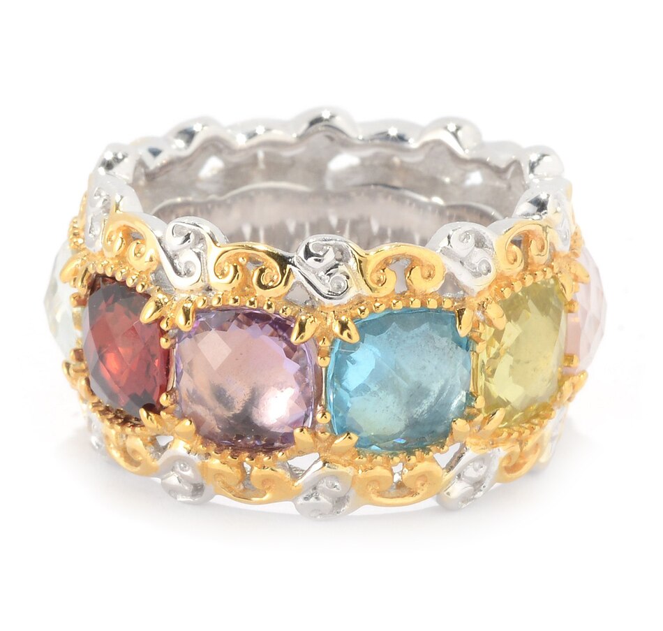 • (1) 6 mm cushion-shaped, prong set and checkerboard-faceted citrine (0.85 av. ctw)