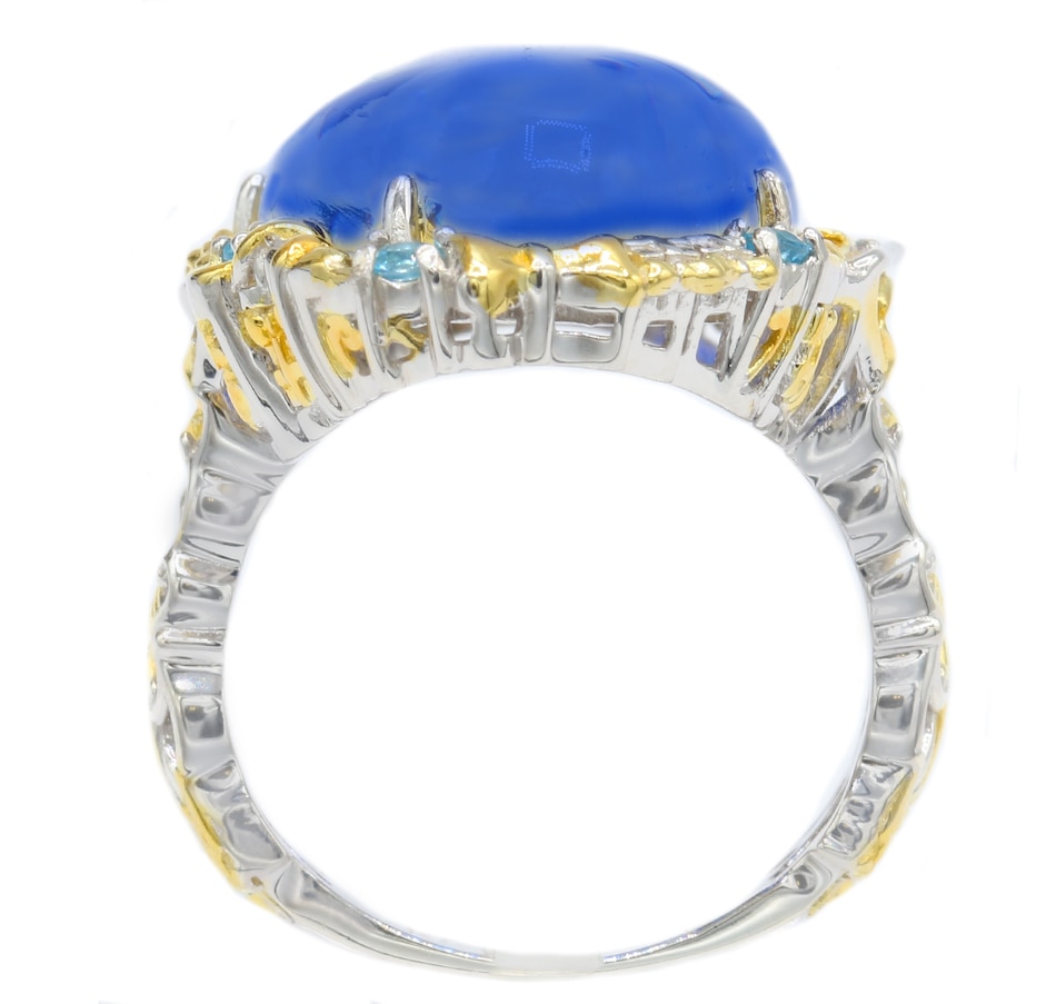 • (1) 25 x 15mm oval cabochon, prong set Carved Blue Amber (12.00 av. ctw)