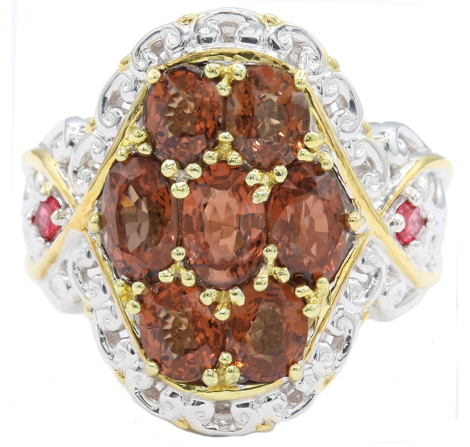 Palladium Silver Dark Orange Spinel Cluster Ring