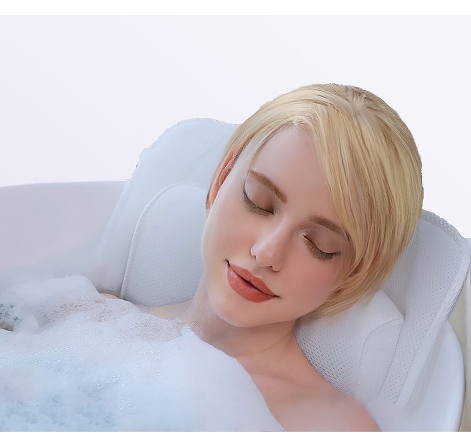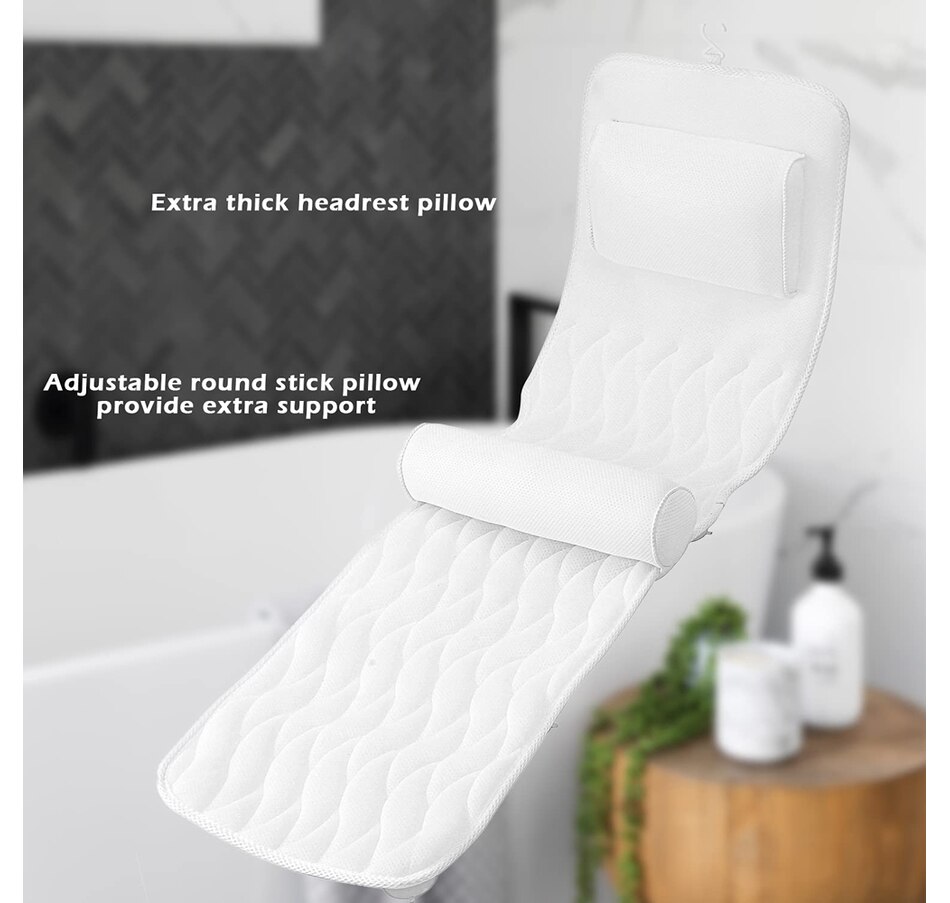 This bathtub pillow includes a large and soft lumbar pillow, which will support your waist perfectly. This pillow can be used in the tub and can be used for your waist, legs, and feet. There is a suction cup on the back, so you can secure it firmly in the tub exactly the way you need it. This full body bath mat with lumbar pillow will give you the ultimate bath experience. Made from special mesh material, which is of deluxe quality, it employs an 'anti-yellowing' quality to make sure the clean white colours is there to stay! It will support your head and neck perfectly when you’re laying in your tub, and allow you the ultimate relaxed soaking experience in the tub. It includes lots of large and strong suction cups, so you'll be supported and relaxed firmly exactly as you prefer. lt will fit any tub, spa, or jacuzzi, and features a big drying hook attached on the back to hang up after use.