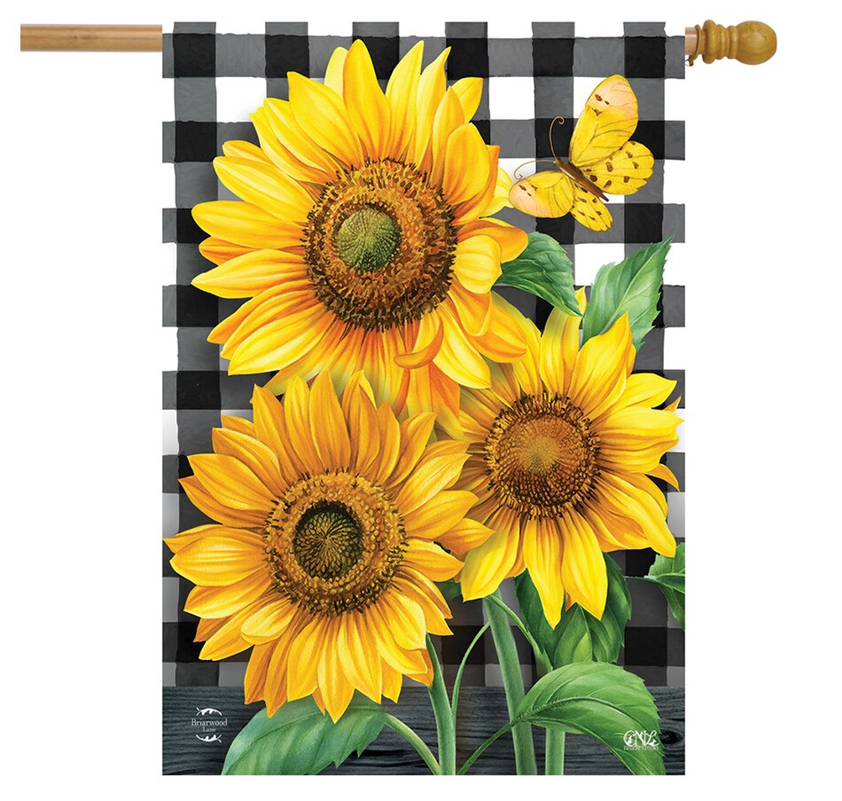 Briarwood Lane Decorative Full-Size House Flag Checkered Sunflowers Summer