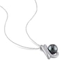 10K White Gold 9-9.5mm Black Tahitian Pearl & Diamond Pendant with Chain