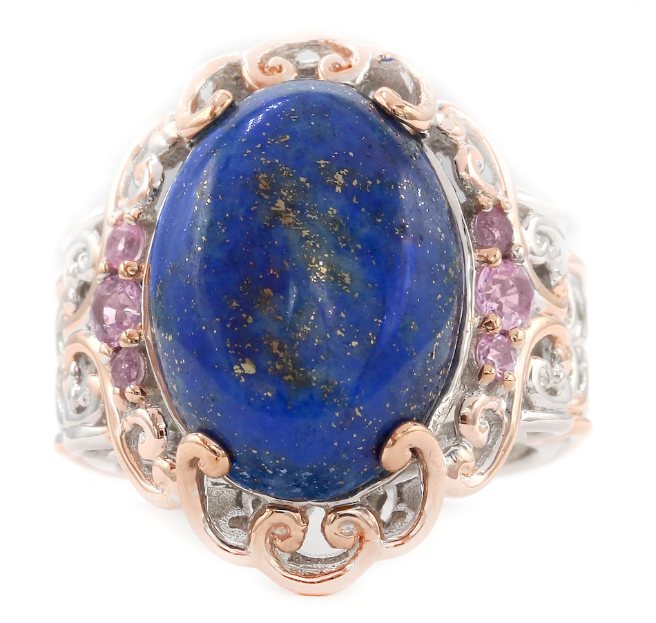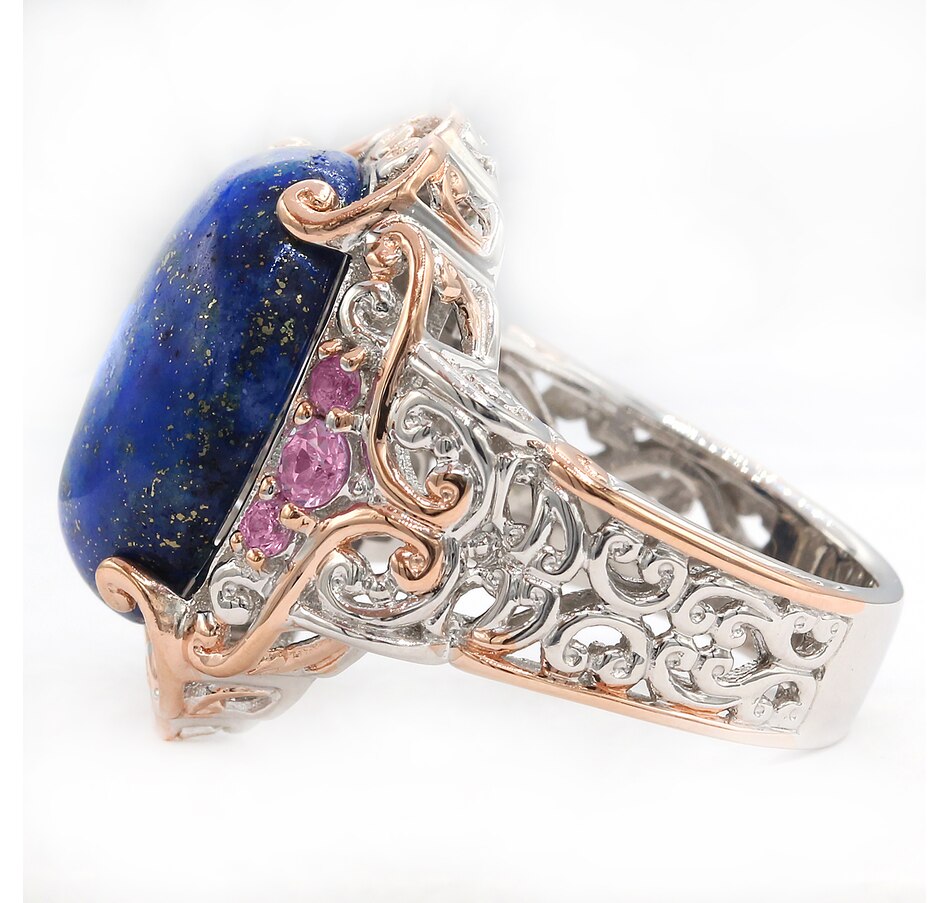 Palladium Silver Lapis And Light Pink Sapphire Ring
