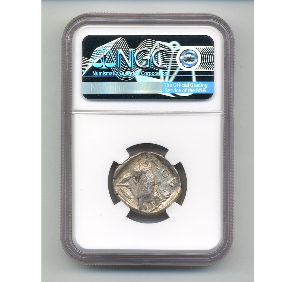 This authentic uncirculated Athenian owl silver tetradrachm coin is one of the most recognized and sought-after classic coins of Ancient Greece. It serves both as a 2,400-year-old work of art and as a collectible that tells an intriguing story about the rise of Western civilization. This example has been independently authenticated and certified by NGC (Numismatic Guarantee Corporation) as being in original Mint State condition. NGC is one of the largest and most reputable certification services in the world.