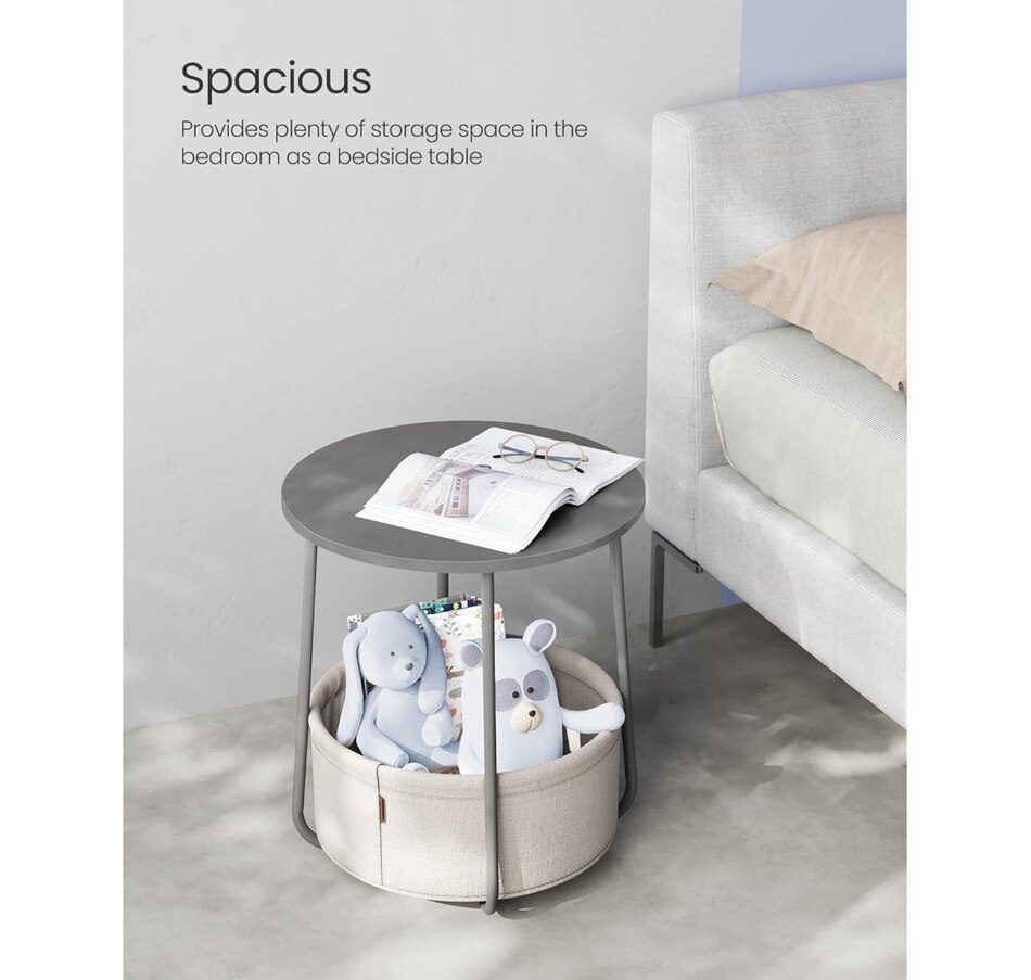 Round End Table with Fabric Basket (cement grey, cloud white)