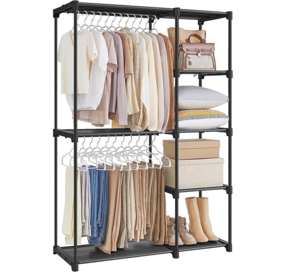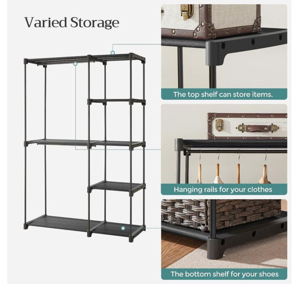 Freestanding Open Wardrobe Vertical Shelf with Rack and Shelves
