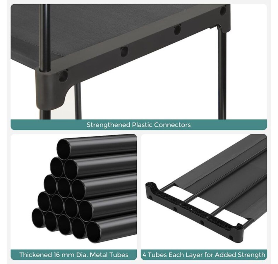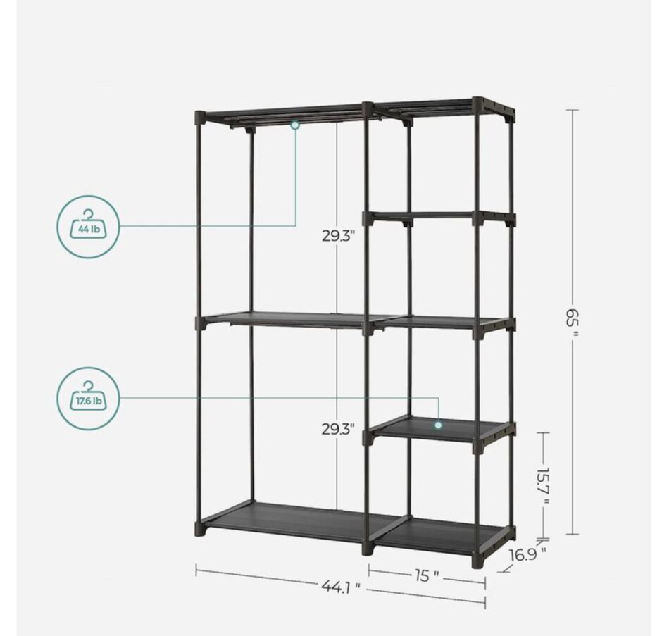 • Maximum static load capacity per fabric shelf: 17.6 lbs