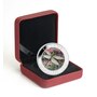 The blue-and-violet dragonfly is not painted or coloured in a conventional way. Instead, the metallic element niobium has been oxidized to refract light and create rich blue and violet hues which artfully mimic the dragonfly's iridescent appearance in the sunlight. Niobium is naturally a dull grey metal which is primarily used to create niobium-titanium superconductor magnets for high-tech applications such as MRI machines. It is also used in very small amounts as an alloy to increase the strength of steel. In recent years, jewellers have used an anodization process to create a wide array of beautiful vibrant colours to enhance custom jewellery. This process has been further developed by the Royal Canadian Mint to add spectacular niobium colouring to this 2017 silver dragonfly coin.