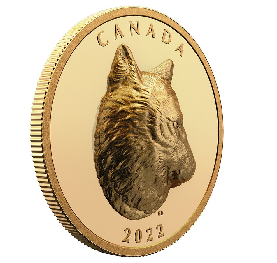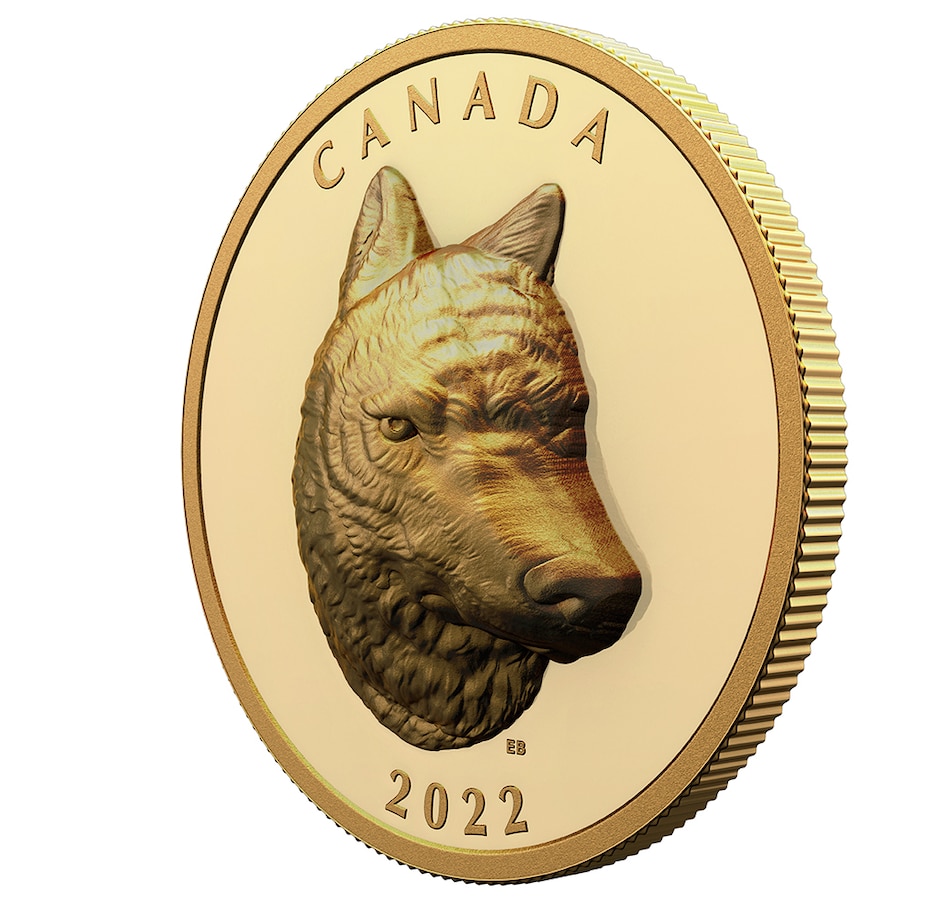 This 2022 $250 timber wolf coin features extraordinary high 3D relief and is struck in just over two ounces of .9999 fine gold. In addition to its exquisite beauty and intrinsic value, the coin has an extremely low mintage of just 275 pieces.