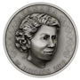 The ultra-high-relief design by Canadian artist Bonnie Ross depicts Princess Elizabeth at the age of about 11, the time when her uncle Edward VIII abdicated, and she became in direct line for the throne. The princess is portrayed with a three-quarter view instead of the traditional side profile, and is flanked by two rows of maple leaves.