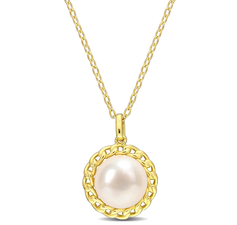 You'll finish all your ensembles with a classic and sophisticated look wearing this sterling silver yellow gold plate 9mm-9.5mm cultured freshwater pearl pendant with chain from Amour Pearls.