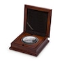 The medallion has a 65.25 mm diameter and a frosted proof finish, and is presented in a premium-quality mahogany-finish display case together with a certificate of authenticity.