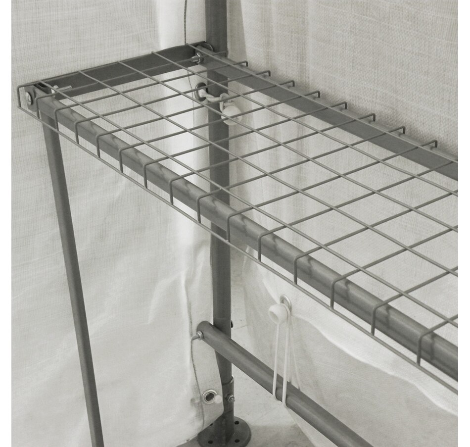 Start seedlings or extend your growing season with the GrowIT 6' x 8' Backyard Greenhouse with Integrated Shelving. This easy-to-assemble, compact greenhouse is constructed with high quality steel and features 4' shelving on both sides for built-in staging of plants. Screen vents at both ends provide airflow and temperature control. The translucent fabric allows a significant amount of diffused light to reach the plants.