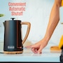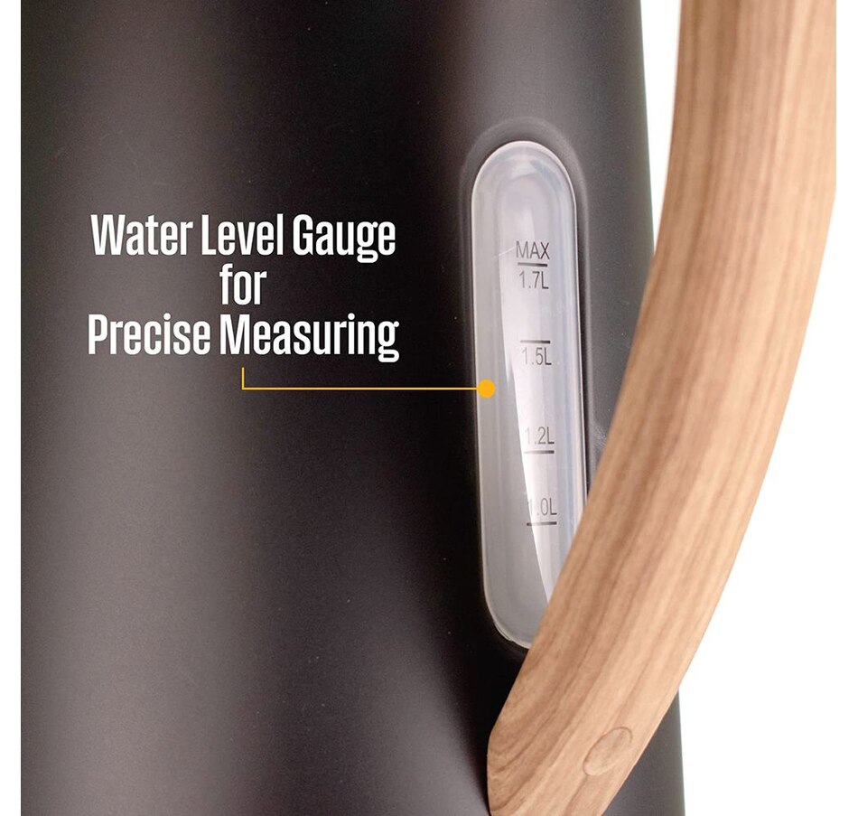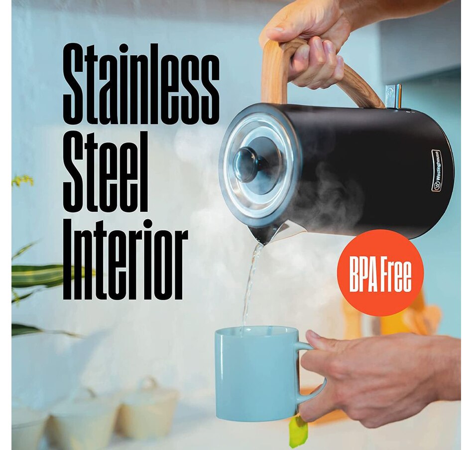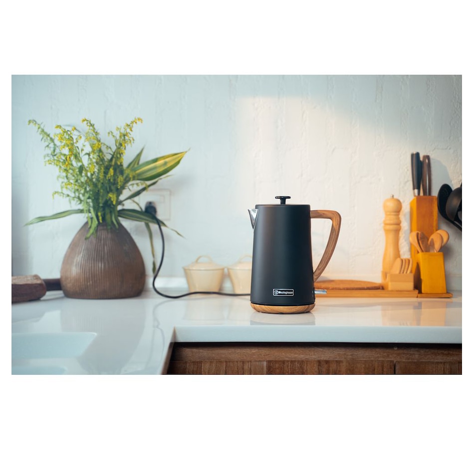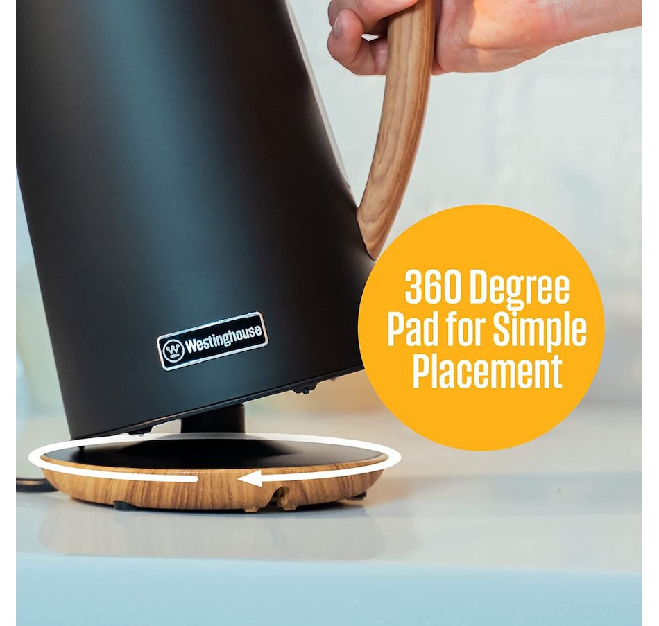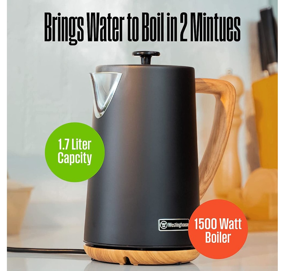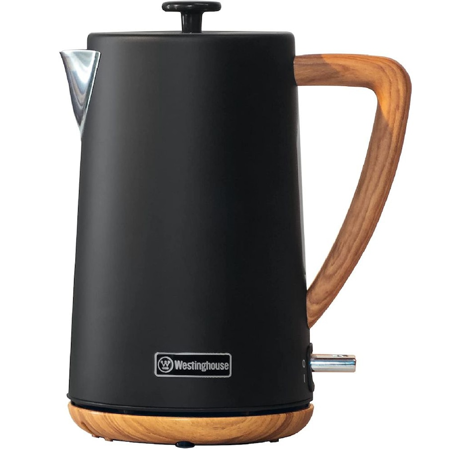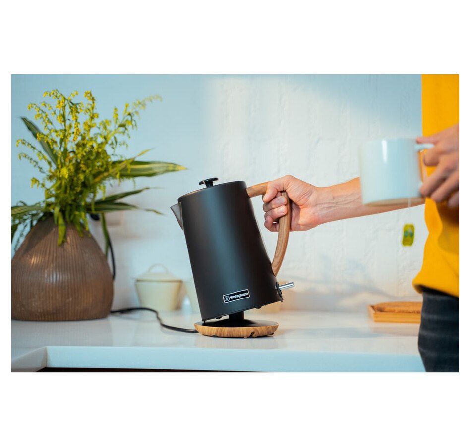 The Westinghouse electric kettle is the perfect way to start your day. With its sleek black matte stainless steel finish and Scandinavian wood print, it's sure to look great in any kitchen. The 1.7 litre capacity is perfect for making tea, coffee, or other hot beverages for the whole family. The 1500 watt boiler brings is ready in just two minutes, so you can quickly enjoy your hot drink. The built-in water level gauge makes it easy to measure the perfect amount of water, and the 360 degree placement allows for easy and convenient use. The high quality stainless steel construction is durable, rust-resistant, and easy to clean.