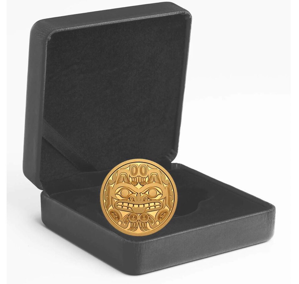 He is best remembered for monumental works such as "The Spirit of Haida Gwaii," but Iljuwas (Bill Reid) began his creative career as a goldsmith, with jewellery pieces representing Haida tradition. Beautifully executed in 99.99% pure gold, this finely engraved rendering of Bill Reid's Xhuwaji, Haida Grizzly Bear epitomizes the artist's craft on the 100th anniversary of his birth. It's an exquisite celebration of a legacy forever preserved in precious metals, argillite, wood and other mediums. The reverse design features an engraved rendering of Xhuwaji, Haida Grizzly Bear, and the obverse features the effigy of Her Majesty Queen Elizabeth II by Susanna Blunt.