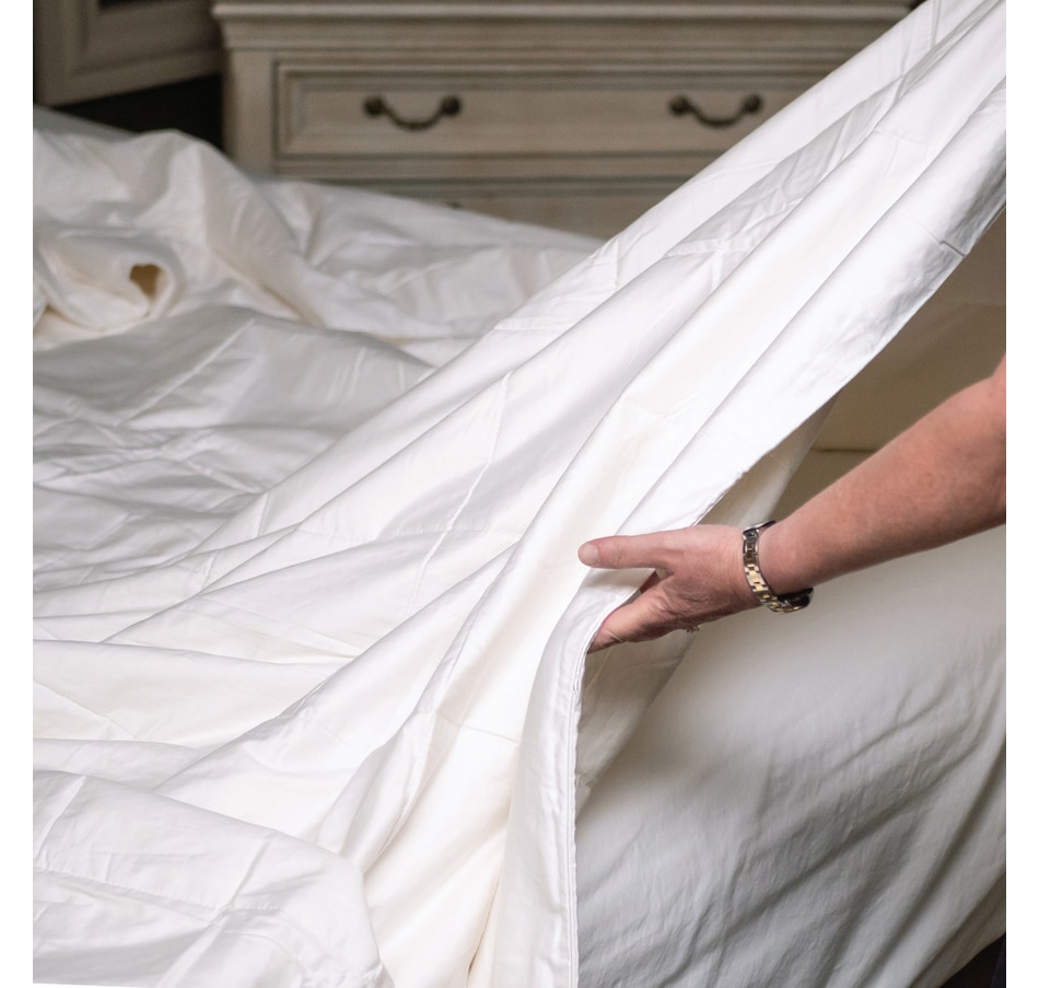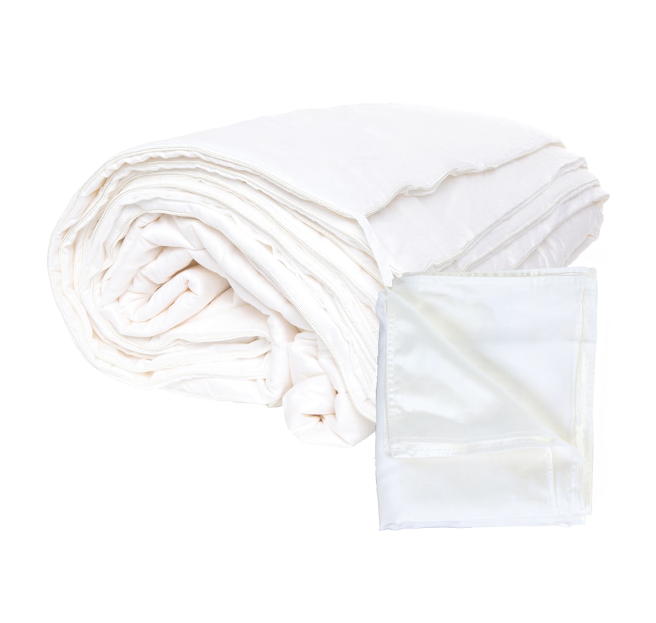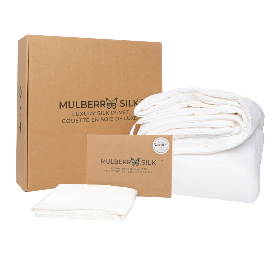 This luxurious duvet from Mulberry Silk is made from 100 percent breathable material, with a cotton cover that's made of 100 percent natural non-allergenic fibre. Individually handmade and handcrafted, the silk is stretched by hand, then box-stitched into a 230-thread-count cotton cover. This duvet is lightweight and drapes to the contour of the body, and thanks to the silk's reflective and breathable properties, it lets you remain warm in winter and cool in summer. This bundle also includes a silk pillowcase, which can help decrease hair damage, help reduce frizzy hair after sleeping, and won't leave creases or lines on your skin like other fabrics (which also makes it great for wrinkle prevention). Breathe easy at night with Mulberry Silk, manufacturing the finest in premium silk bedding since 1990, and available at a great value through TSC!