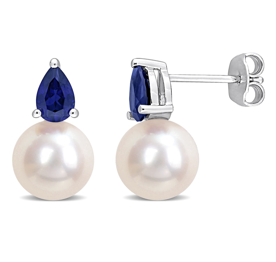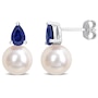 Sterling Silver 8.5-9mm Freshwater Cultured Pearl & Blue Sapphire Earrings