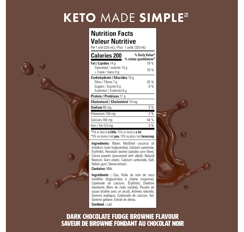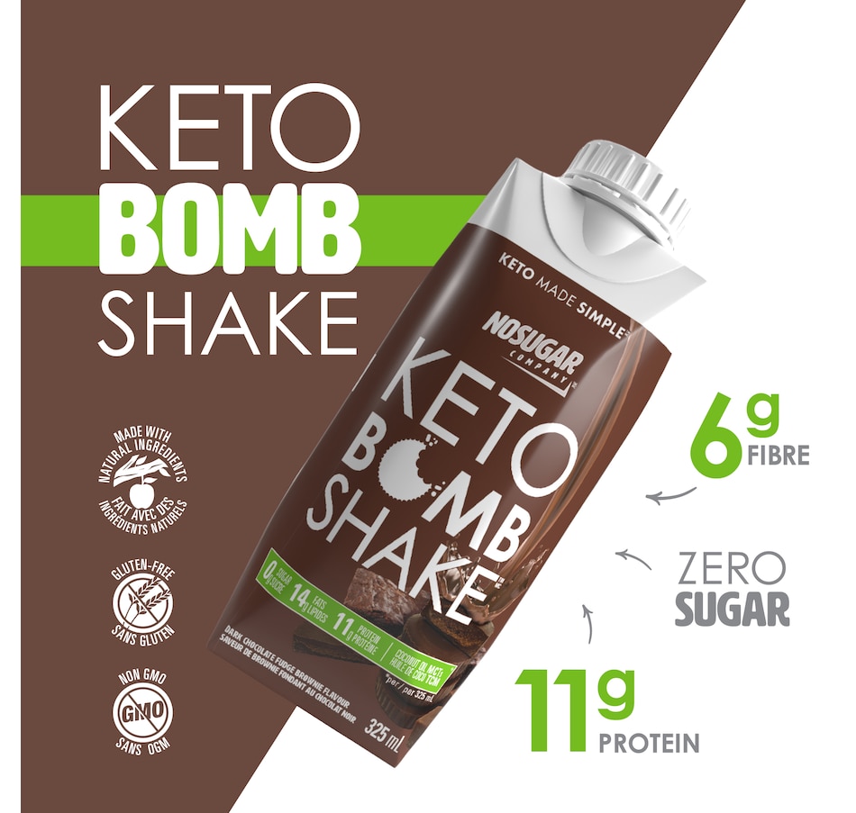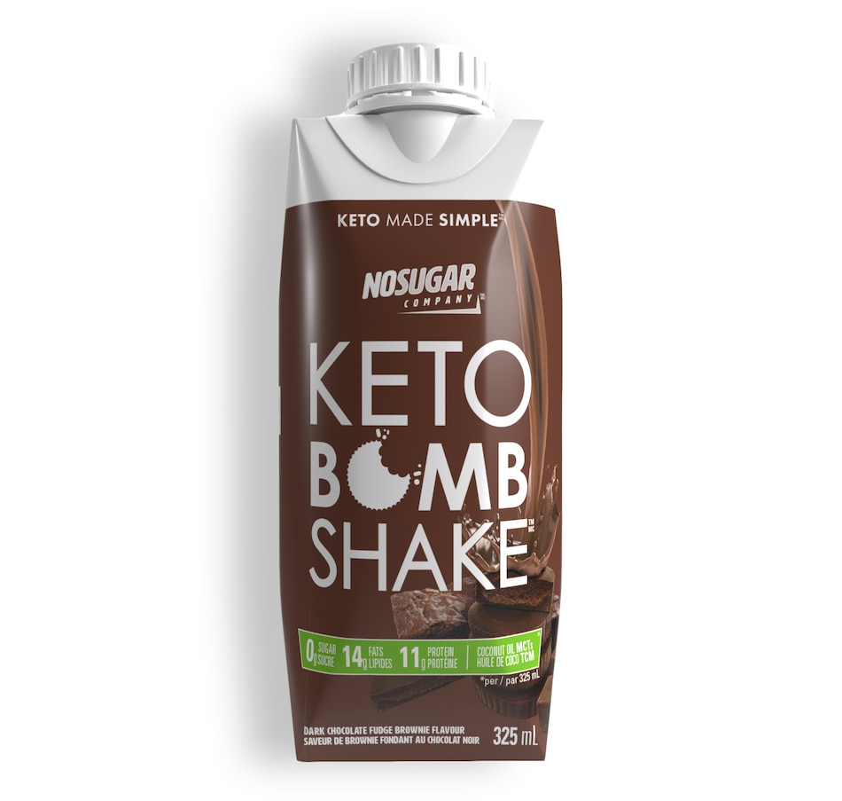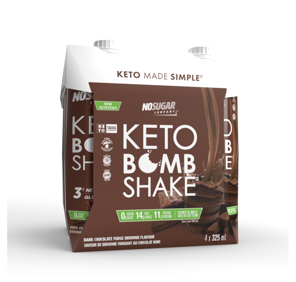 • No Sugar Keto Bomb Shake Dark Chocolate Fudge Brownie 4-Pack (325 ml)