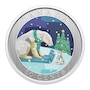 Christmas is a magical time, and the magic of the season is showcased on this large-format 2023 lenticular 50-cent coin. The whimsical design creates a sense of motion and features two interlaced images of a polar bear and an arctic hare sledding down a slope past pine trees adorned with holiday stars. At first, the hare looks on as the polar bear prepares to slide down the hill, but when you tilt the coin to change the viewing angle, the rabbit hops onto the sled to join in the fun as the animal friends coast down the slope! This coin is fun for all ages and makes a perfect stocking stuffer. The obverse features the posthumous effigy of Queen Elizabeth II by Suanna Blunt.