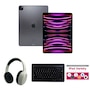 • Buttons and connectors: five microphones; four-speaker audio; top button; camera; volume up/down; magnetic connector; Smart Connector; Thunderbolt/USB 4